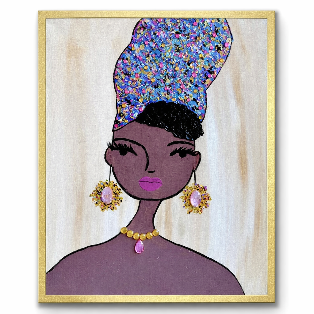 Handpainted with acrylic paint on a 16x20 canvas in a gold floating frame..