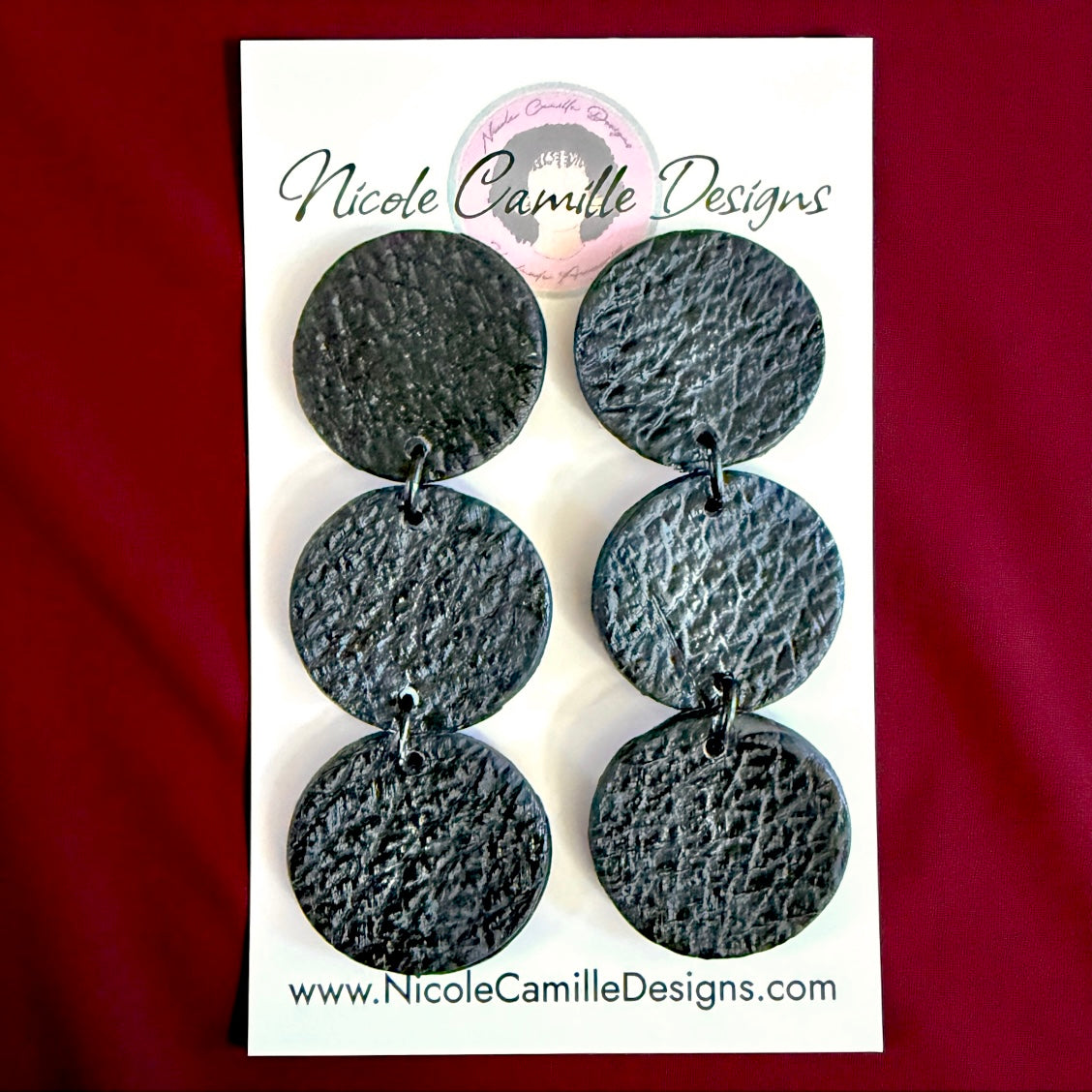 Black Leather Triple Disc Clay Earrings