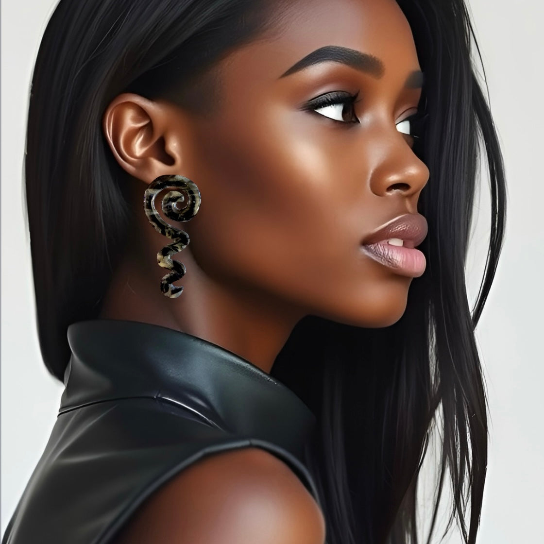 Black Marble Spiral Squiggle Clay Earrings