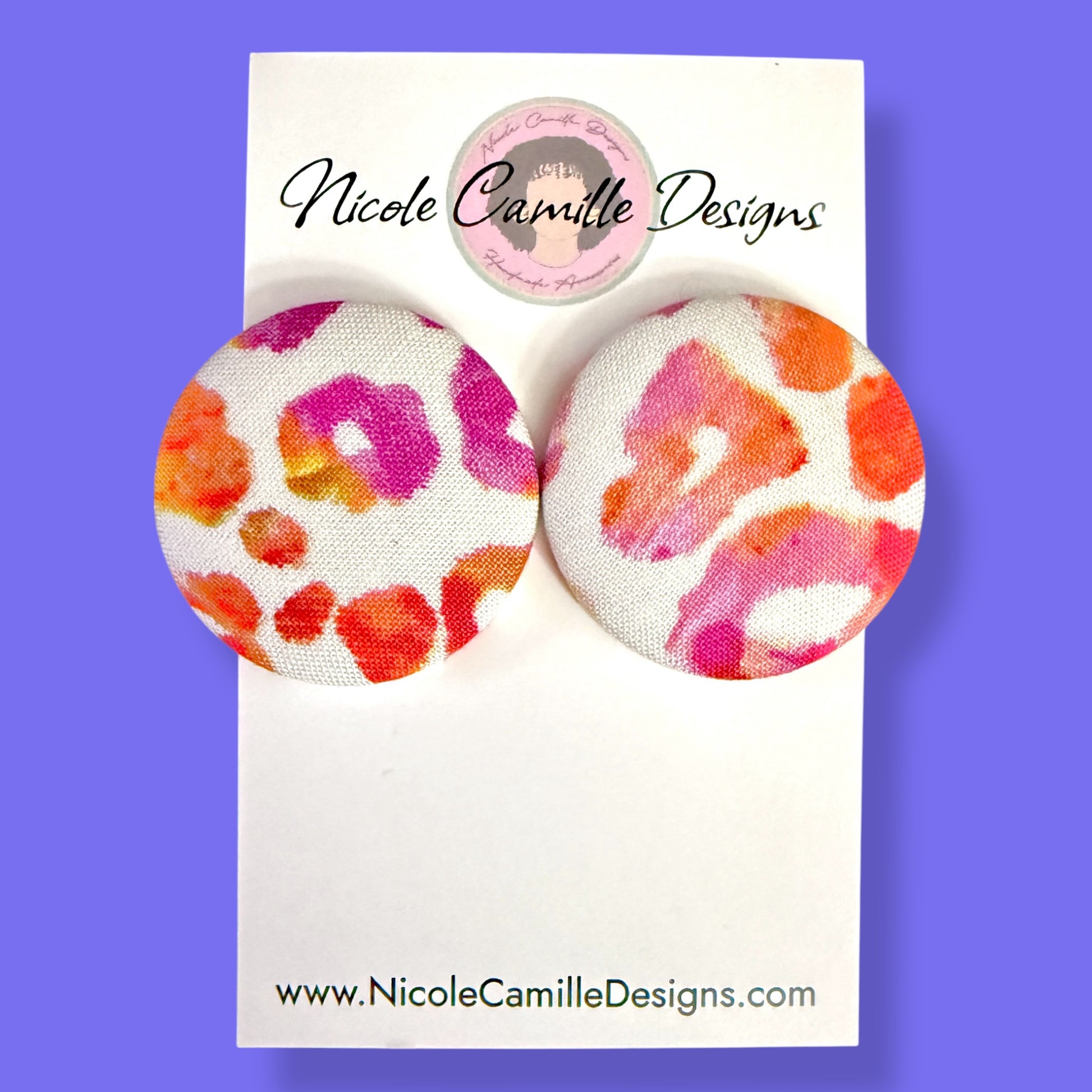 Colorful Leopard Fabric Button Earrings