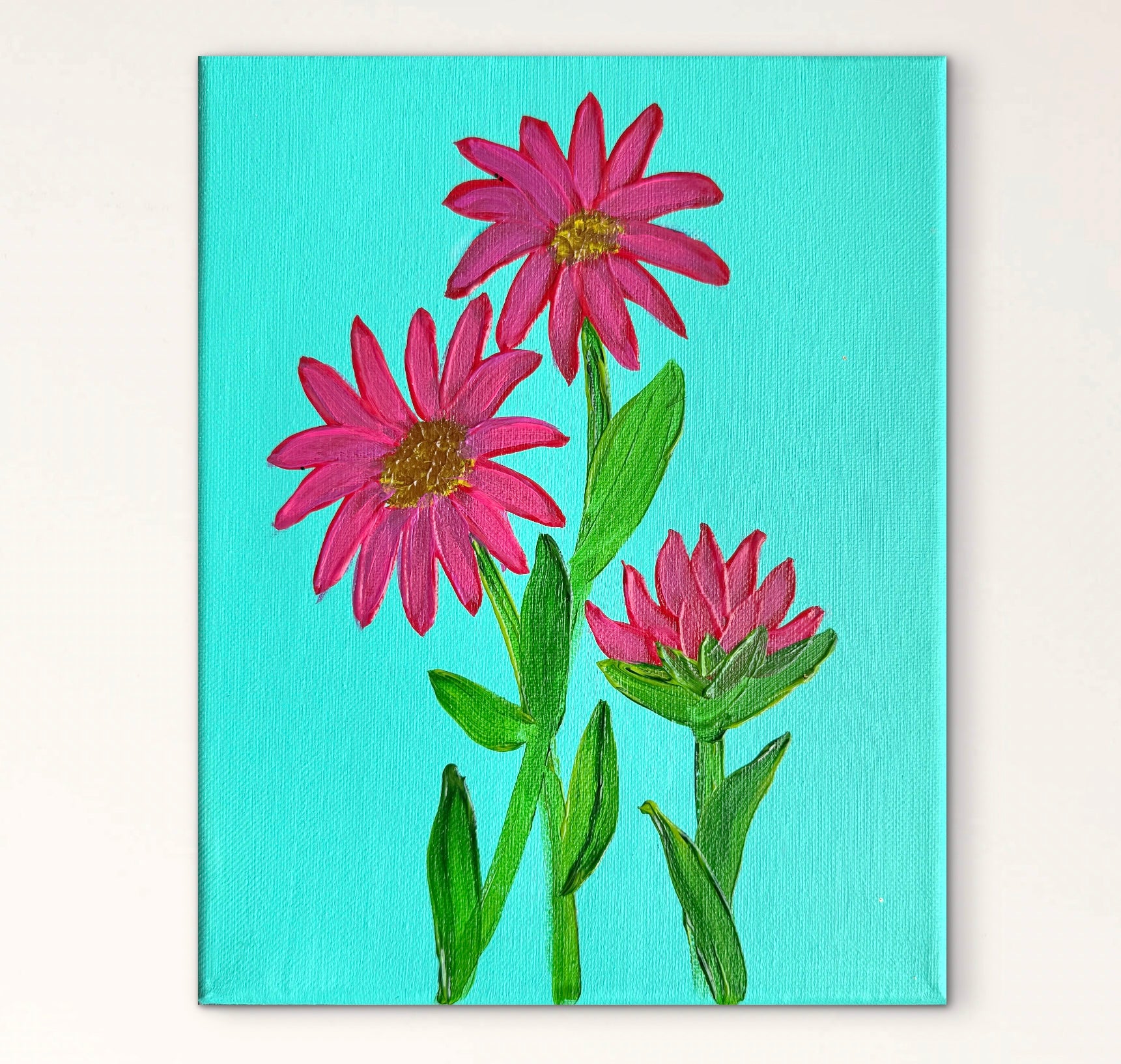 Handpainted with acrylic paint on an 8x10 canvas. White wood frame optional.