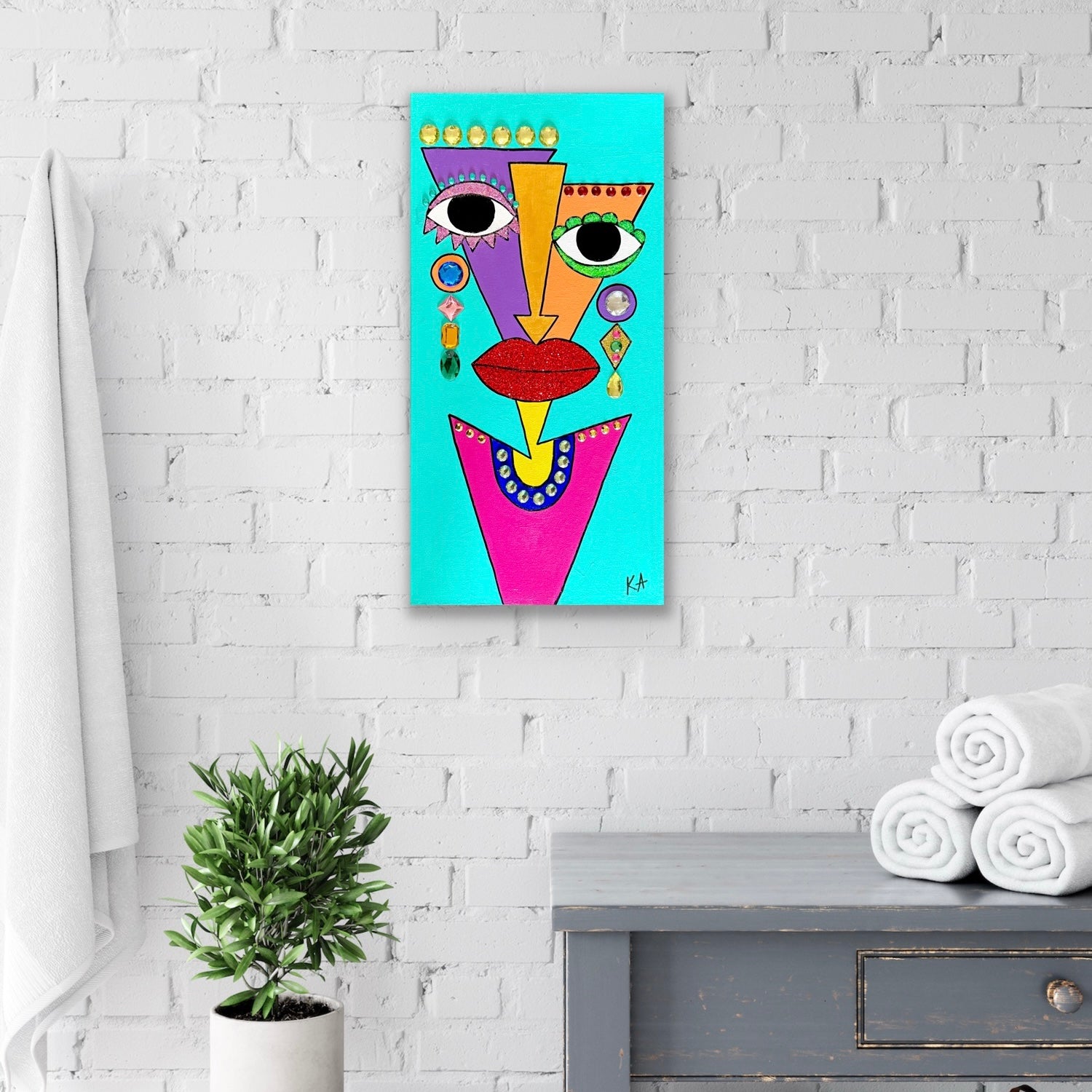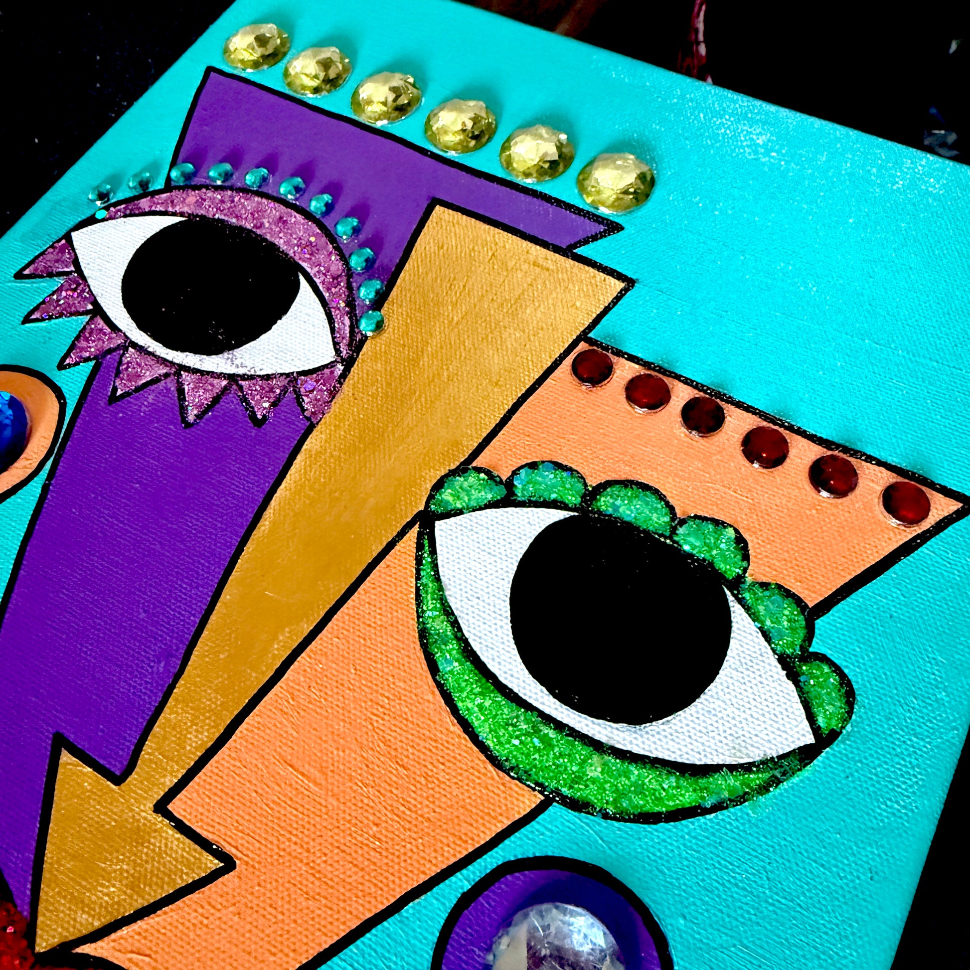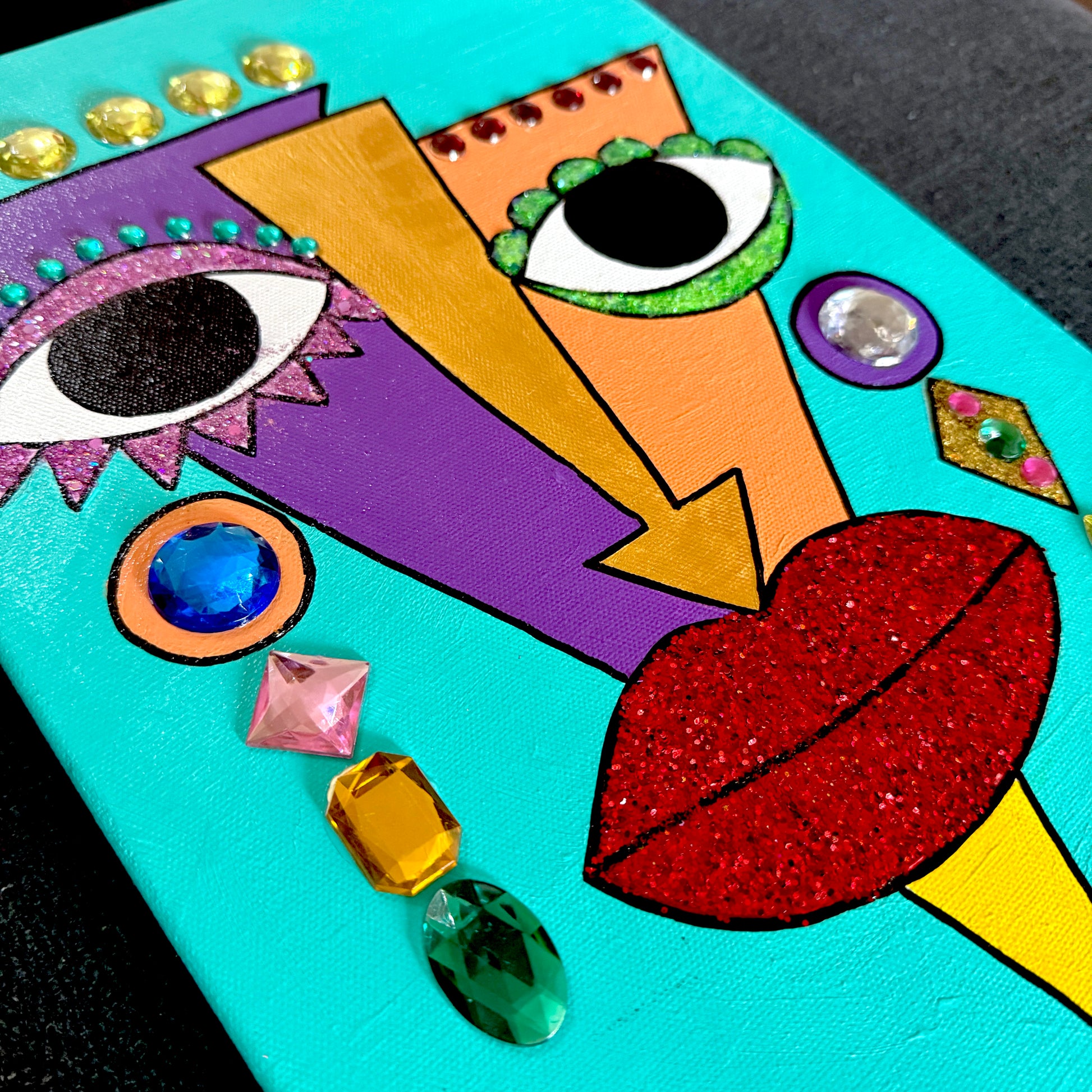 Mixed media painting, featuring acrylic paint, gems, and glitter on a 10x18 gallery-wrapped canvas. (Frame not included)