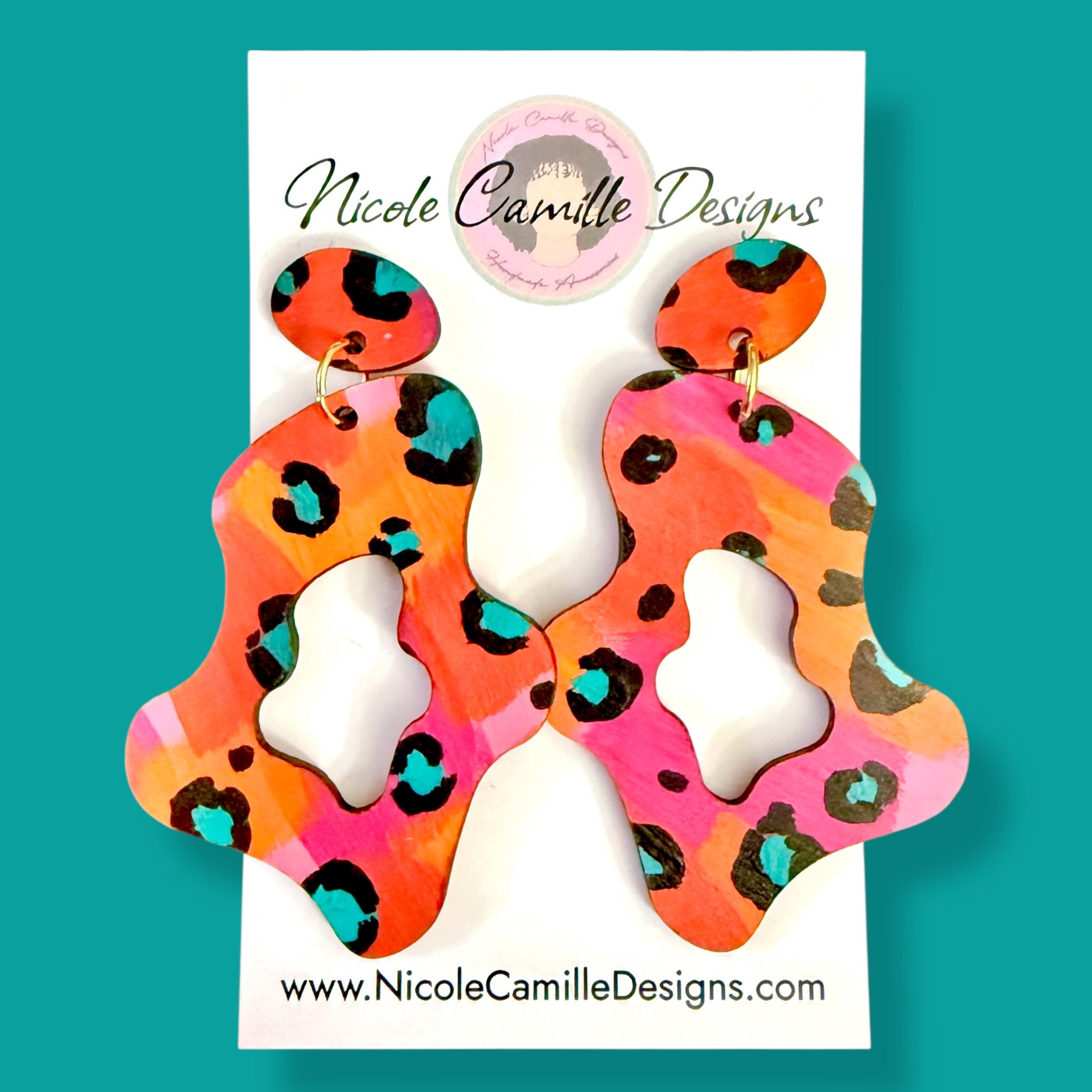 Orange & Fuschia Leopard Organic Wood Earrings