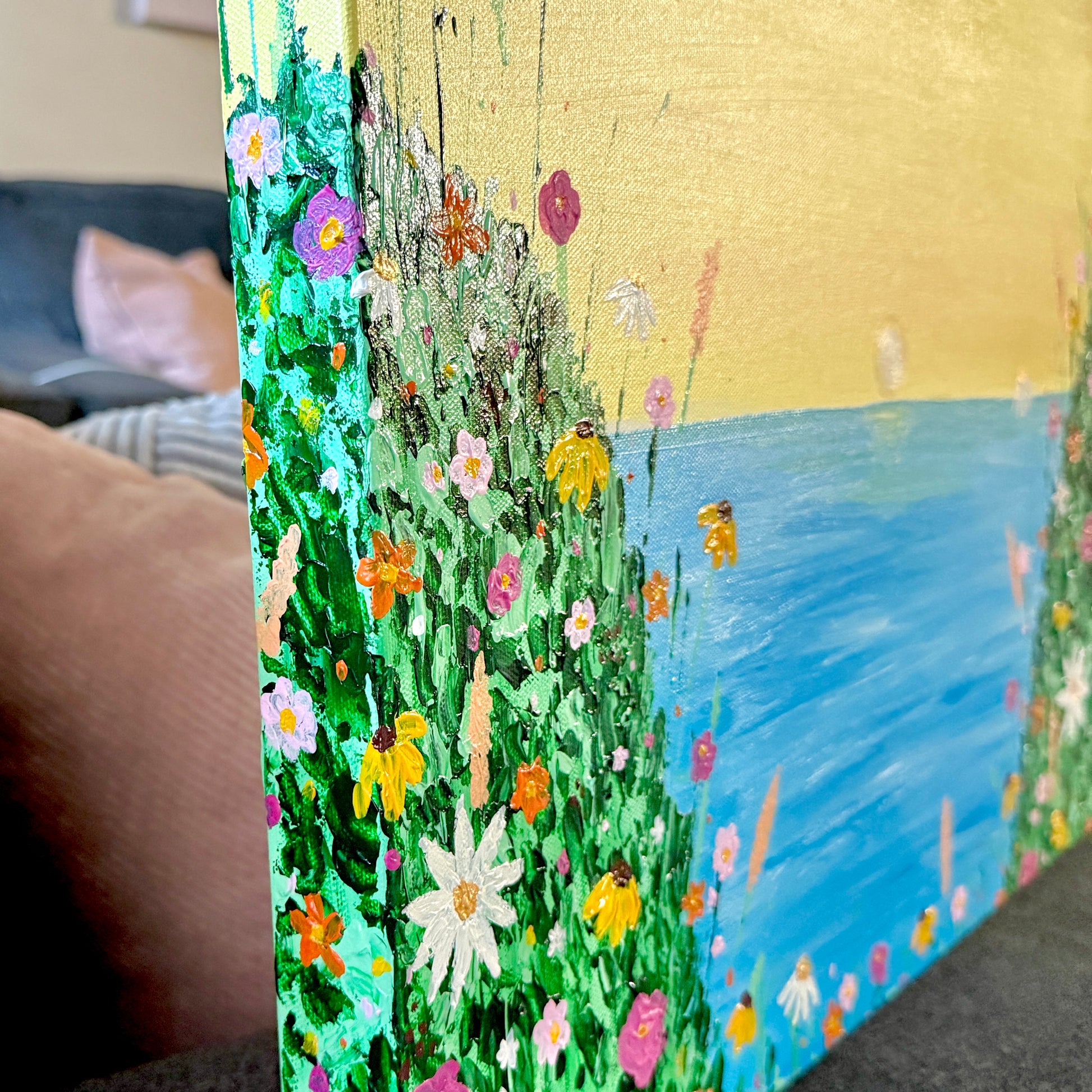 Handpainted with acrylic paint on a 20x20 canvas.